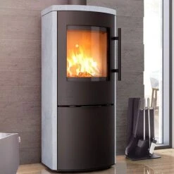 Für die Kaminofenserie Aduro 15 (außer Aduro 15.3) hat Aduro eine Glasbodenplatte entwickelt, die vor den Kaminofen gelegt werden kann und zur Form des Ofens passt.