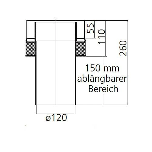 Anschlussstück An Ofenstutzen, Innenrohr Kürzbar, Doppelwandiges Ofenrohr, System Primus, 120 Mm