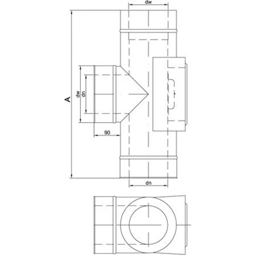 Feuerungsanschluss 90°, Abgang Auf MKD Mit Prüföffnung, ø 130 Mm (190 Mm)