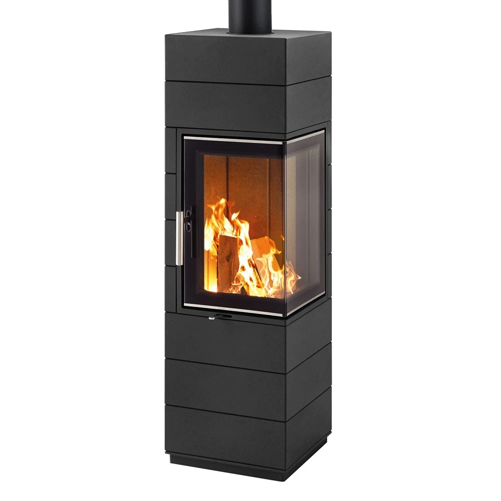 – 360° Dehkonsole (unsichtbarer Sockel + drehbarer Stutzen), Arretierungswinkel einstellbar - Brennstoffe: Scheitholz (bis: 25 cm Länge), Holzbrikett