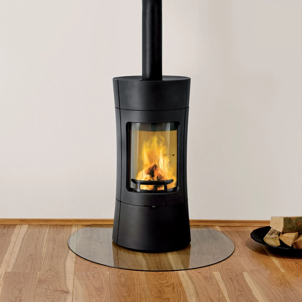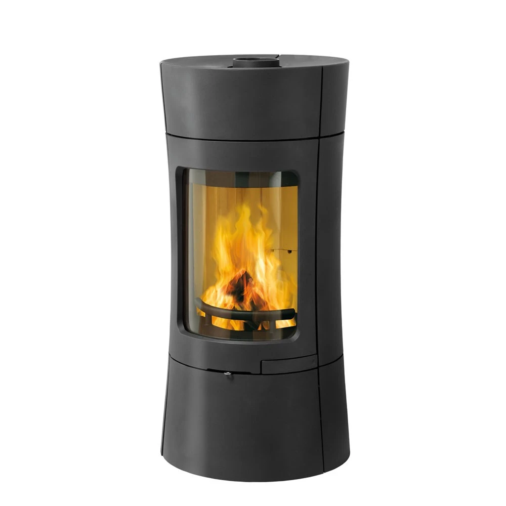- runder, platzsparender Gussofen mit besonders großer Scheibe