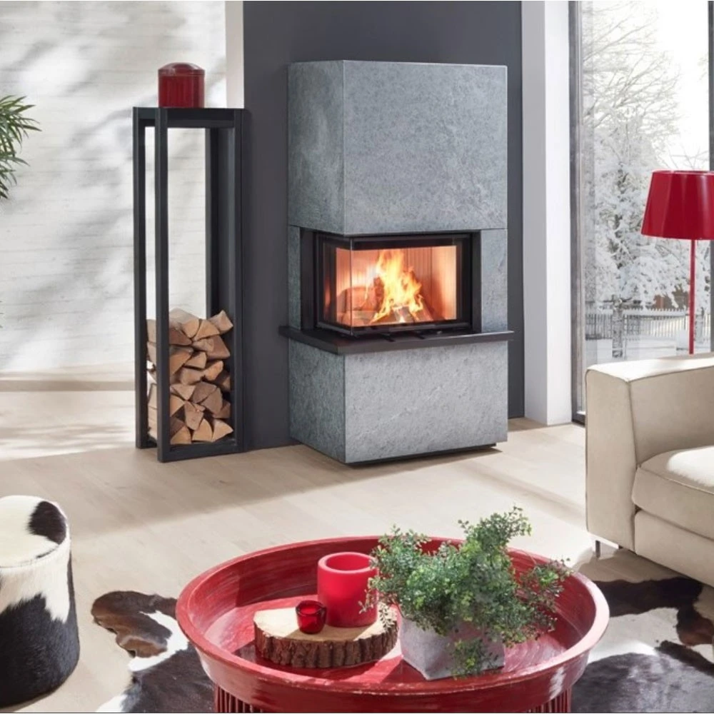 Ein Bausatzkamin für jede Ecke. Der OSORNO kommt individuellen Wünschen weit entgegen. Zum Beispiel durch einen Kamineinsatz mit hochschiebbarer Tür, mit 2–seitiger Glasscheibe und in Stahl- oder Natursteinverkleidung. Aber auch durch die Option, die Speichersteine im oberen Bereich anzuordnen.
