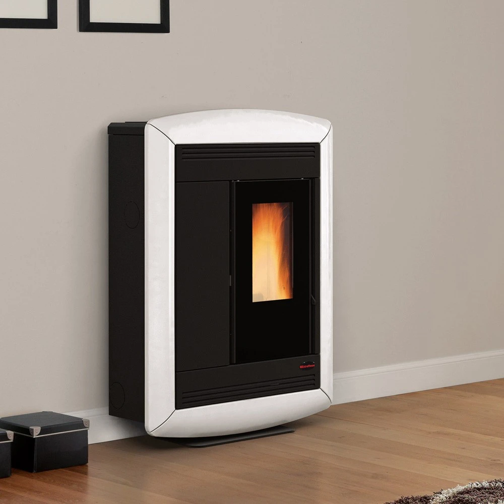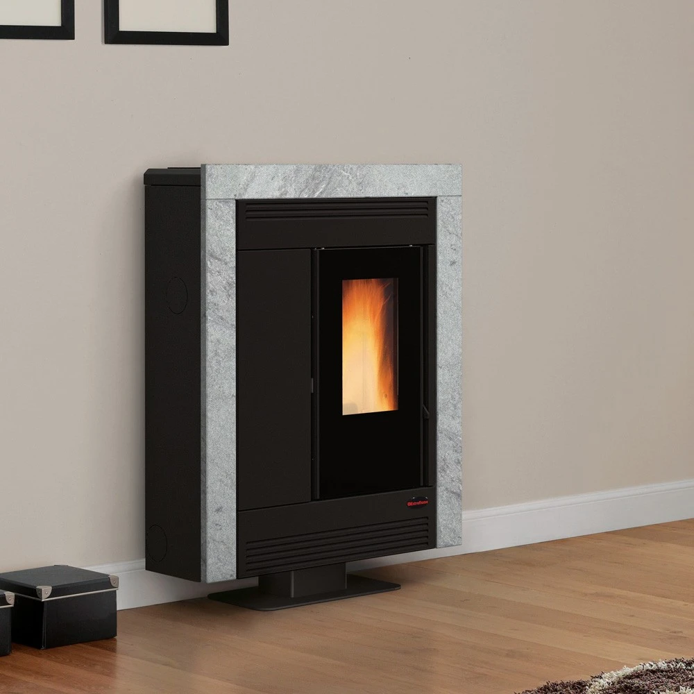 Der Pelletofen LaNordica – Extraflame SOUVENIR LUX ist ein kanalisierbarer, flacher Pelletofen, augestattet mit einer Keramik- oder Natursteinverkleidung sowie Infrarot-Fernbedienung und Wochen-Zeitthermostat.