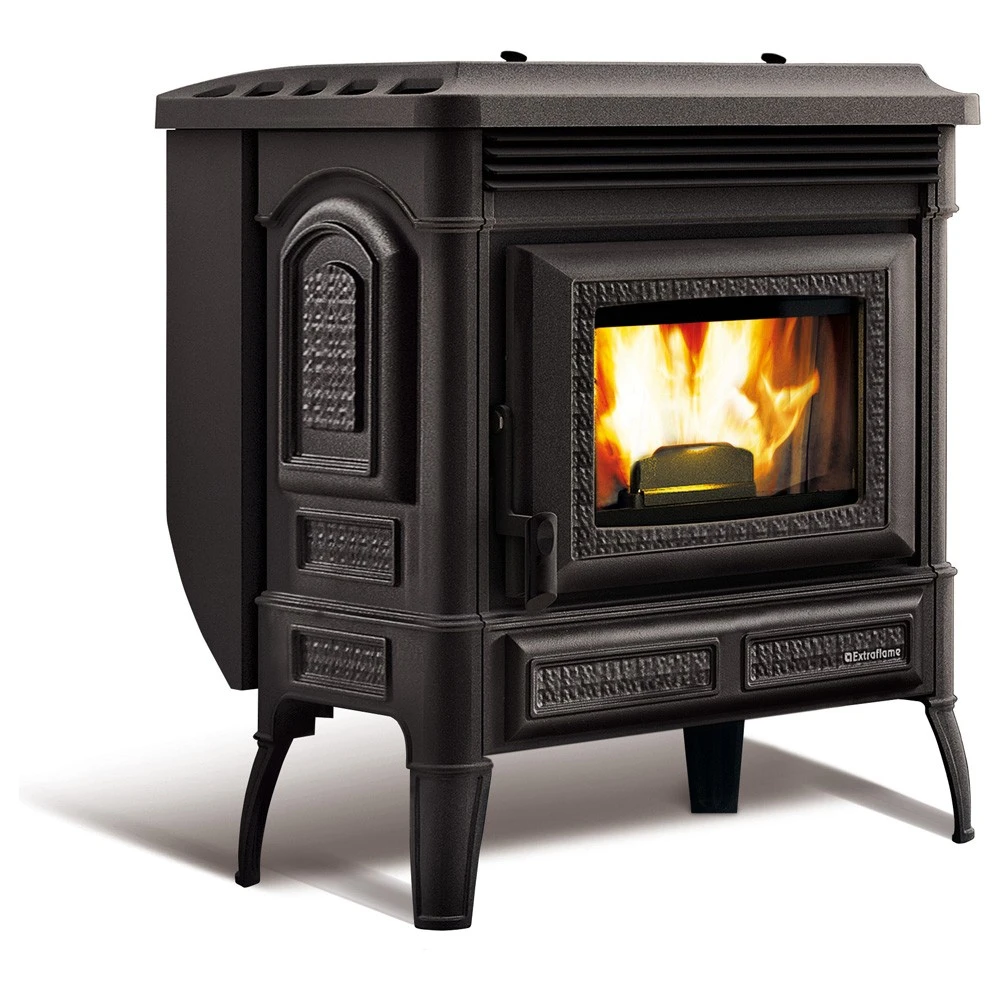 Der Pelletofen LaNordica – Extraflame TEODORA ist ein Pelletofen mit einer Verkleidung aus emailliertem Gusseisen, Infrarot-Fernbedienung und Wochen-Zeitthermostat.