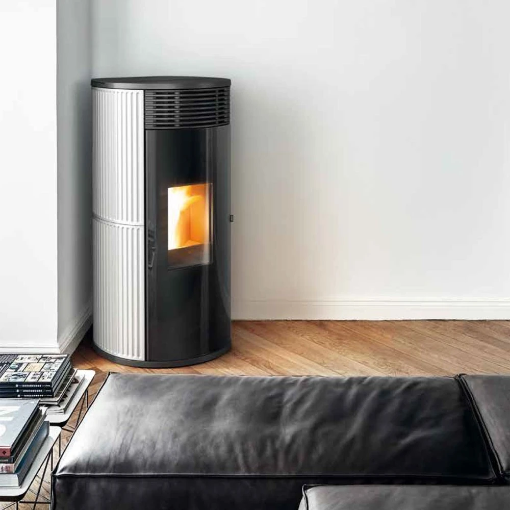 Der Pelletofen MCZ Pad Hydromatic 24 M2 ist mit glatter oder geriffelter Keramikverkleidung erhältlich. Es gibt ihn auch wahlweise mit einer Wärmeleistung von 18 kW oder 24 KW. Der Pad kann komfortabel mit dem Smartphone gesteuert werden und verfügt zusätzlich über ein versenkbares Bedienfeld direkt am Ofen.