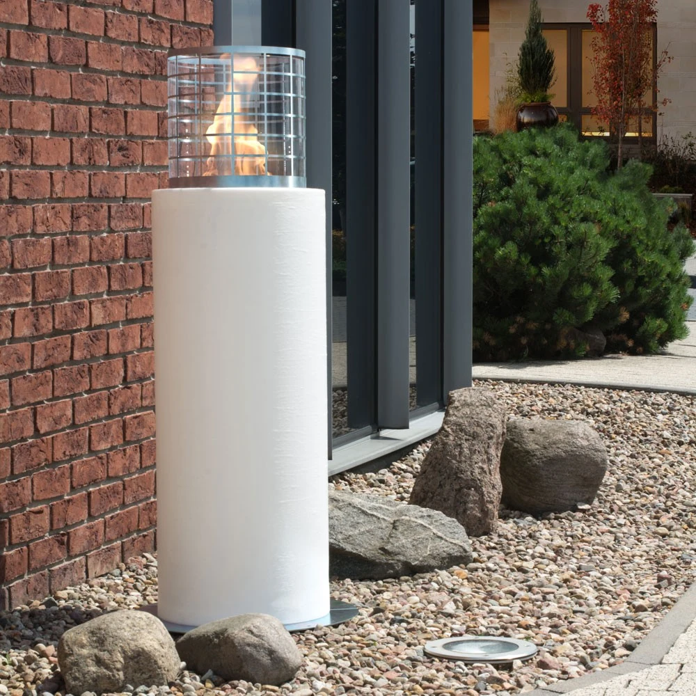 - Lampenschirm und Brennkammer aus Edelstahl, Verkleidung: Polyethylen, Glaszylinder
