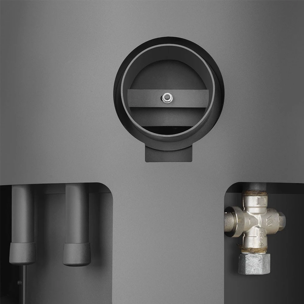 Der wasserführende Kaminofen Island Aqua bietet die Möglichkeit, durch seinen integrierten Wasser-Wärmetauscher, einen Teil der produzierten Wärmeleistung in das Zentalheizungssystem einzuspeisen. Auch die Anbindung an die Brauchwassererwärmung ist möglich, die Anschlüsse für Heizung bzw. Brauchwasser befinden sich dezent hinter einer Rückwand des Ofens.